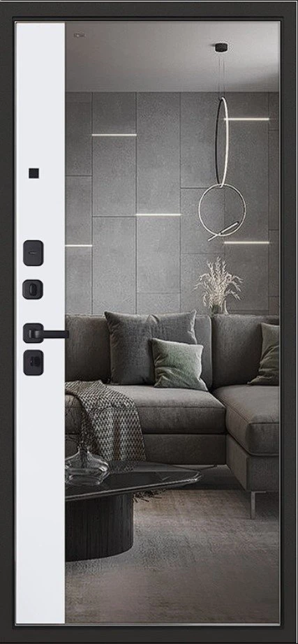 Надежная входная Дверь Scandi с зеркалом премиум класса по цене 45 047 руб. Большая толщина стали защитит от проникновения в ваш дом, квартиру или коттедж. Используется очень качественная фурнитура: замки, цилиндры, ручки, защелки. Покрытие и отделка двери изготовлено под внимательным контролем производителя. Дверь имеет долгий срок службы и гарантию.